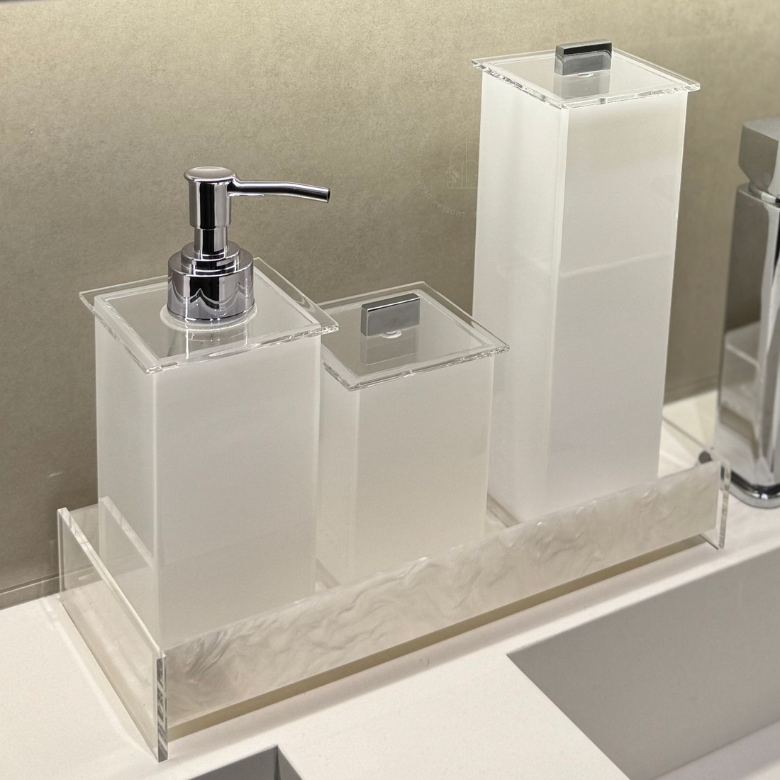 A bandeja retangular em acrílico pérola é ideal para quem busca um acessório sofisticado e funcional para organizar o banheiro, lavabo ou até mesmo outros ambientes da casa. Com acabamento perolizado e design clean, ela acomoda perfeitamente porta escova, dispenser de sabonete líquido, porta algodão e outros itens decorativos, trazendo harmonia e requinte à bancada.