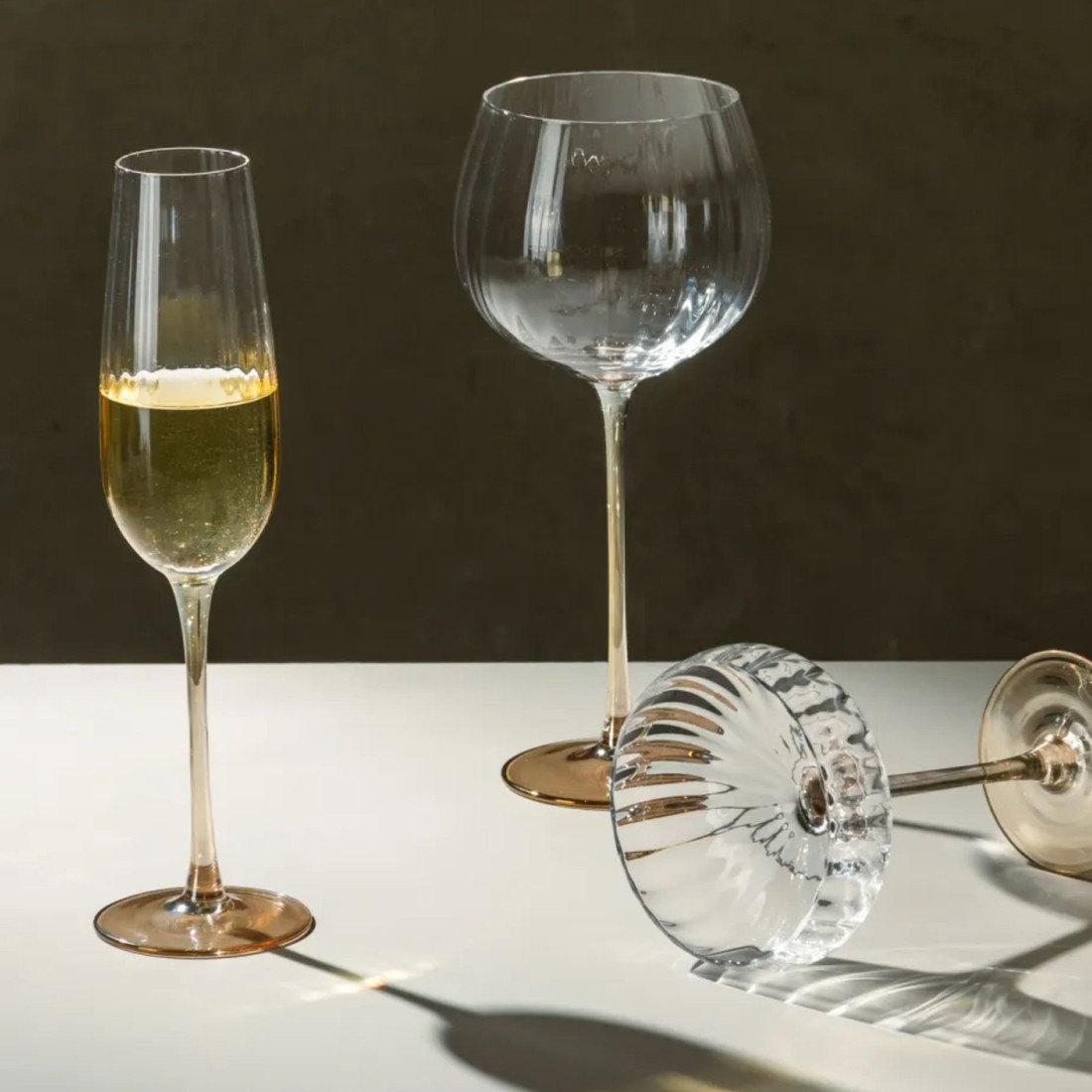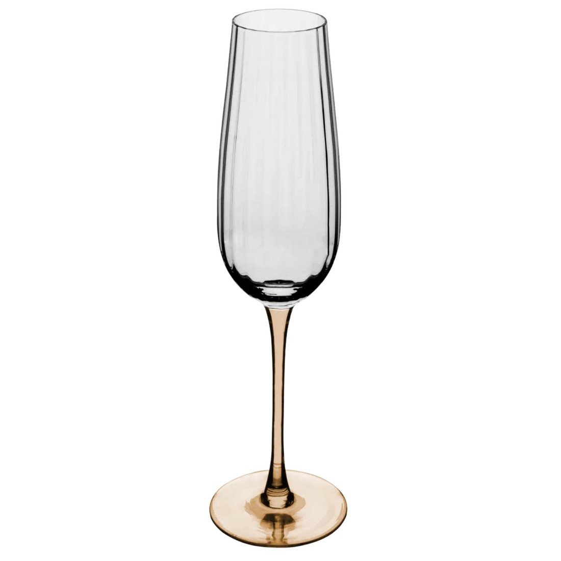 Celebre momentos especiais com elegância. Este conjunto de taças de champanhe une o corpo em vidro cristalino à haste em tom âmbar, criando um design sofisticado e moderno. Com capacidade de 230ml, seu formato alongado preserva a efervescência e realça o frescor dos espumantes, champanhes e proseccos. Uma escolha perfeita para brindar em ocasiões especiais ou compor uma mesa posta requintada.