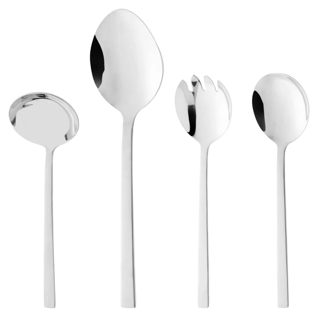 Transforme cada refeição em uma experiência de requinte com o Conjunto Berna. Composto por 1 colher para servir, 1 colher para salada, 1 garfo para salada e 1 concha, cada peça é confeccionada em aço inox, garantindo durabilidade, acabamento impecável e brilho elegante. Ideal para servir saladas, molhos e acompanhamentos com sofisticação e praticidade, complementando mesas sofisticadas e momentos especiais.