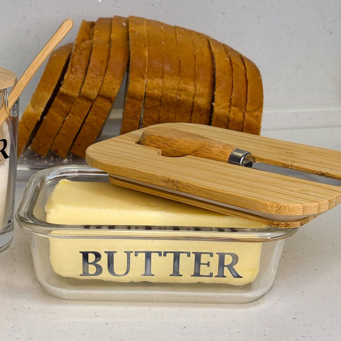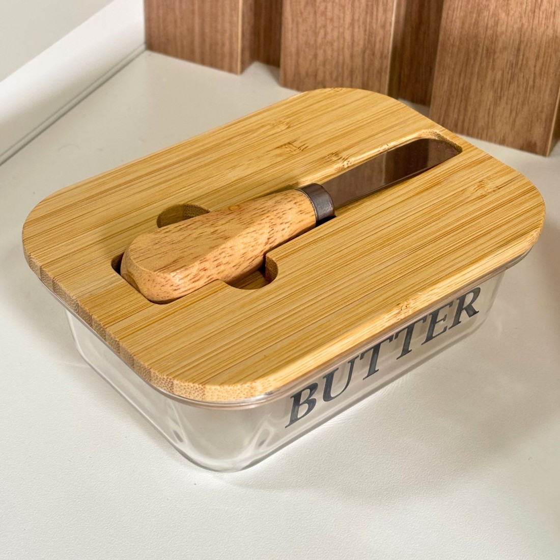 Praticidade e charme em um só item. Esta manteigueira combina vidro transparente com tampa de bambu natural, trazendo um toque rústico e elegante à sua mesa. Acompanha espátula para servir com facilidade, perfeita para quem valoriza funcionalidade sem abrir mão do estilo.