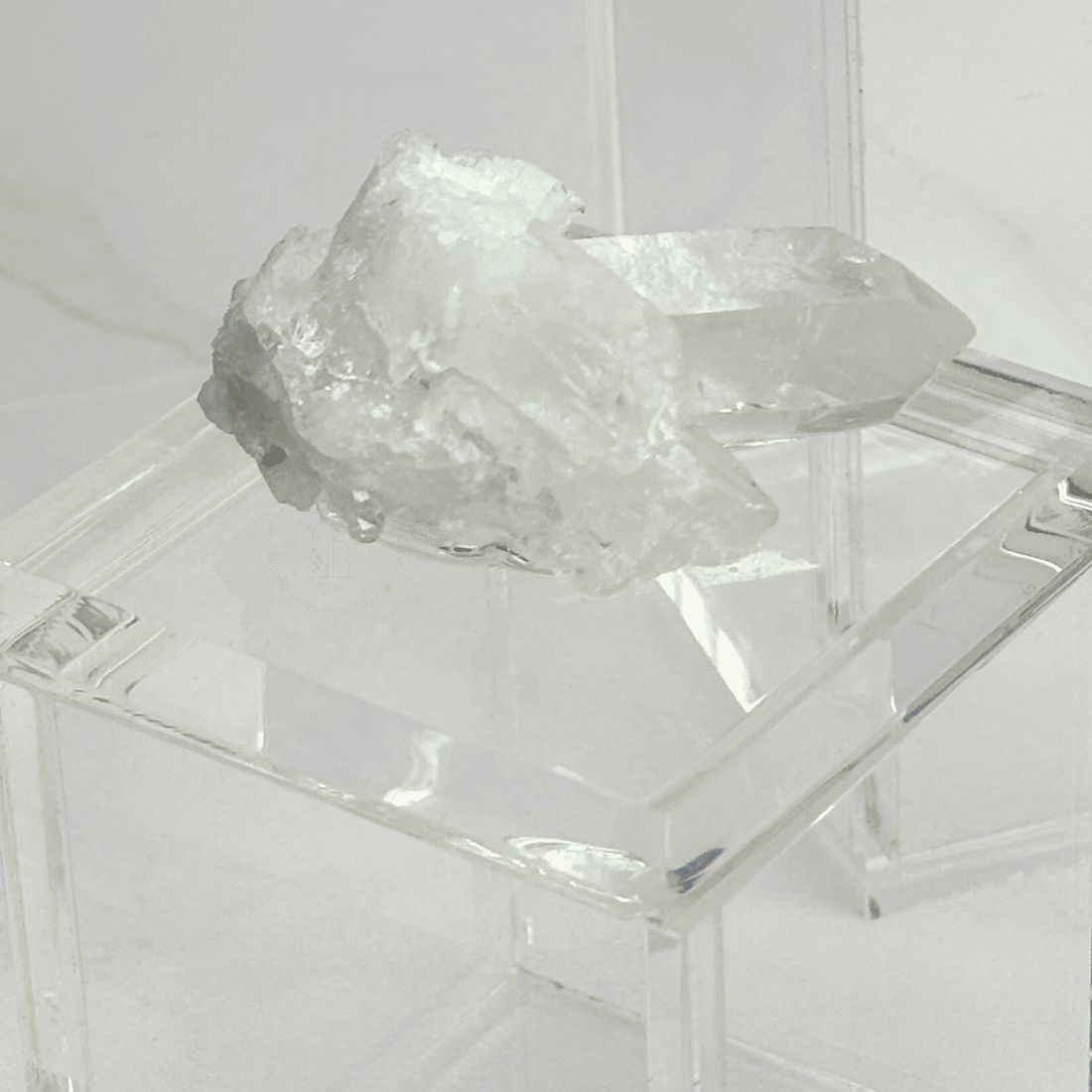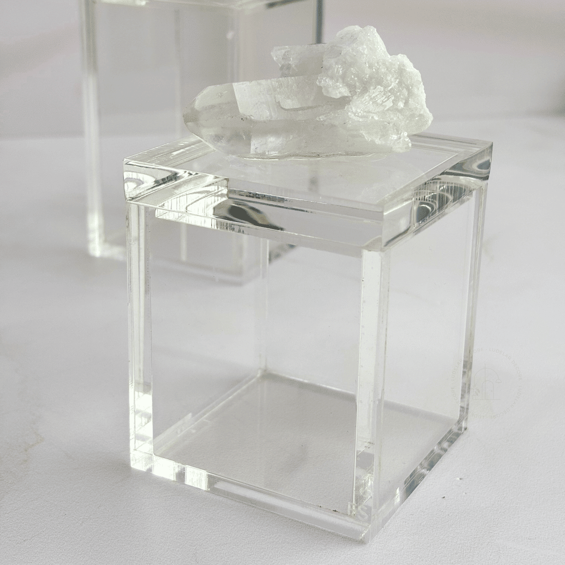 Elegância em cada detalhe: o Mini Box é confeccionado em acrílico cristal de alta transparência, trazendo leveza e modernidade ao ambiente. Sua tampa exclusiva, adornada com uma pedra natural, transforma a peça em um objeto de design único, que une sofisticação contemporânea e o charme da natureza.