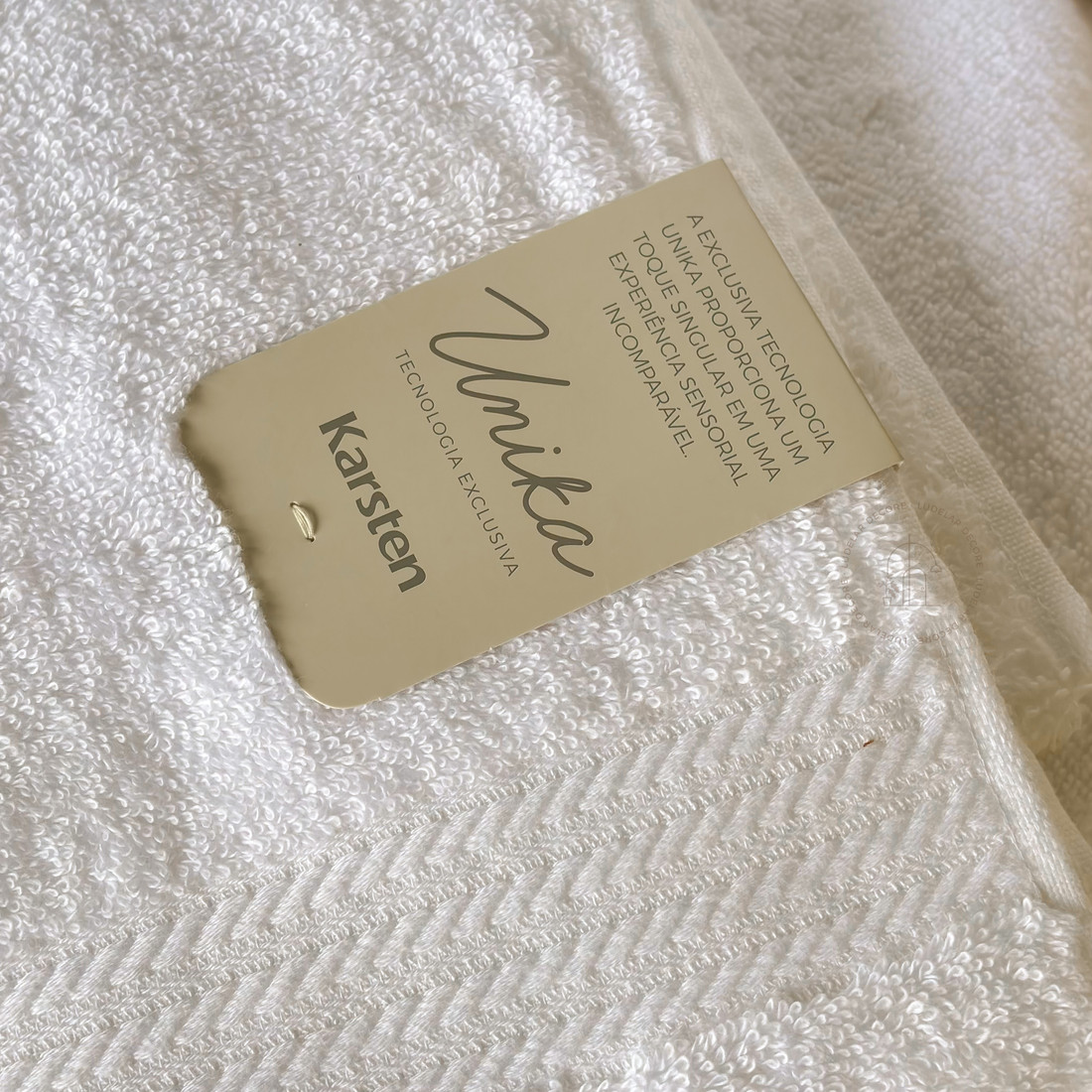 Com a Tecnologia Umika, a toalha ganha uma experiência sensorial incomparável, trazendo ainda mais maciez, conforto e volume ao uso. Já a tecnologia Softmax, exclusiva da Karsten, renova o toque e melhora a sensação desde o primeiro contato, garantindo um acabamento delicado e aconchegante.